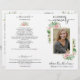 This folded program features an elegant frame surrounded with roses floral bouquet. You can personalize with a photo of your loved one and program information regarding the funeral/memorial service. You can customize the program to any way you would like to remember and honour the memory of your loved one.