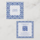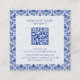 "Create a timeless design aesthetic with our elegant royal blue and white vintage floral damask pattern. Personalize with customizable blue typography and a QR Code, perfect for interior designers, home decor specialists, and other professionals in the industry."