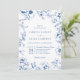 Elegant royal blue floral calligraphy QR code all-in-one wedding invitation.