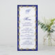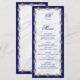 Frame your wedding menu with elegant metallic royal blue and gold jeweled filigree. White satin in the background adds to the luxury. Easily customize the coordinating blue text in classic fonts.