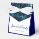 Beautiful royal blue peacock wedding favour boxes. You can personalize this elegant royal and teal blue peacock wedding favour box with your text in the font style you like, add a background colour and change the ribbon colour.