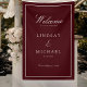 Elegant Royal Burgundy & White Scripted Font Wedding Banner with your Names, Date & Text.