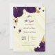 elegant romantic royal purple flowers and gold leaves against marble background save the date invitation