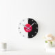 Elegant royal silver grey coloured dots on black and white wall clock. Text can be customized. This clock is a wonderful gift!