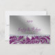 Elegant Purple & Silver Wedding Invitation / anniversary rsvp response card with sparkle leaves damask.