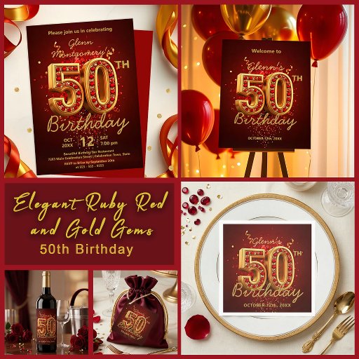 Elegant Ruby Red and Gold Gems 50th BirthdayDesigned by Kristina Lj Petrovska