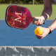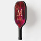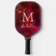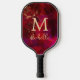 Elegant Ruby Red Gold Monogram Initial Name Pickleball Paddle
