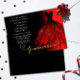 A festive yet elegant Quinceañera design featuring a brilliant red Spanish gown on a red to black fade faux glitter background with real gold foil accent text. Features lots of red faux glitter for a magical evening. Composite design by Holiday Hearts Designs.