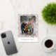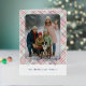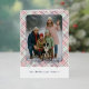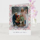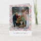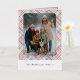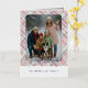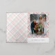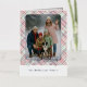 This holiday greeting card stands out with its elegant and unique design. It features a timeless "Happy Holidays" greeting printed in real silver gold foil, customizable to your preference, on a light green, pink, and dark red plaid pattern design. The front offers space for your family name, photo, and a custom seasonal greeting, while the back is ideal for adding a personalized seasonal message or poem. It's a stylish way to send your holiday wishes.