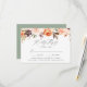 Enhance your wedding stationery with our Elegant Autumn Floral Wedding RSVP Cards. Featuring a top border of hand-painted watercolor flowers, succulents, and leaves in a warm autumn palette of blush pink, peach, orange, cream, brown, and green, these RSVP cards beautifully complement your fall wedding theme. Customize them with your desired RSVP date, personalized accepts/declines wording, and optional dinner choices for a seamless guest experience. The reverse side showcases a solid green background, adding a modern touch of contrast to the design. Perfect for couples seeking a blend of rustic charm and elegance, these RSVP cards are a stylish addition to your wedding suite.