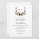 This chic rustic wedding invitation with antlers features the monogram initials of the bride and groom framed by stag antlers which are decorated with a watercolor burgundy floral bouquet. Please contact me through Zazzle Chat if you need design tweaks, more matching products, or other colorways.