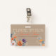 The true artistry of your badge lies in the delicate watercolor-style floral illustrations that adorn the bottom left and top right corners.