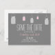 Postcard featuring elegant hanging mason jars in grey and pink on a chic grey background. Personalize it with your names and have the best and most unforgettable wedding starting from the save the date cards perfect for your family and friends. Check out our store to see wedding invitations, labels and many more of this chic design