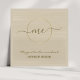 Simple and clean, elegant earth tone square business card. Beige/khaki rustic texture painted background featuring gold logo circle and script signature style font. Reverse side can be personalized with your full contact details.