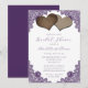 Complement your rustic purple wedding party with this elegant bridal shower invitation featuring two burlap hearts and delicate floral lace. Matching items available.