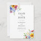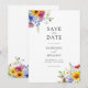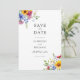 Easily personalize your wedding save the date cards with this editable template. Features minimalist elegant typography design with colourful rustic summer floral.