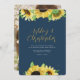 Elegant Rustic Sunflower Navy Blue Photo Wedding Invitation