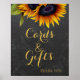 Cards and gifts wedding sign with a beautiful sunflowers bouquet on a dark gray chalkboard background. Perfect for a summer or fall autumn elegant rustic country wedding.