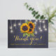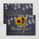 Rustic elegant fall wedding stylish thank you template card on dark midnight navy blue chalkboard background featuring beautiful sunflower bouquets and strings of twinkle lights. Fill in your information in the spots, You can choose to customize it further changing fonts and colours of lettering. ---- The invitation is suitable for elegant summer or autumn fall rustic countryside night weddings. --- If you need assistance in customizing it, please contact me!
