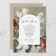 This beautiful, elegant bridal shower invitation features a vintage painting of apple blossom flowers in terracotta orange, white, and green over a rustic burlap background. Text stands out against a white arch shape. Perfect for an autumn or Christmas time bridal shower. The back is a light beige, but the colour can be easily customized, if desired. For design or product enquiries, please feel free to reach out to me (Tracey) at orabellaprints@outlook.com.
