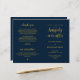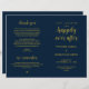 This is the foldable wedding ceremony program card, in Navy Blue and gold elegance rustic script theme (Love laughter and happily ever after).