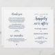 This is the foldable wedding ceremony program card, in Navy Blue elegance rustic script theme (Love laughter and happily ever after).
