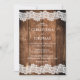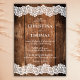 This rustic wood delicate lace country wedding invitation is a charming and romantic way to invite guests to your special day. It features a wooden background with a subtle grain texture, delicate lace accents, making it perfect for a country-themed wedding or for couples wanting a warm and intimate feel. Use the design tools to update the text and the font.