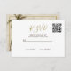 Un élégant palmier se trouve au verso de cette carte RSVP. Design élégant moderne et mariage. L'information sur le dos est facilement changée à la vôtre a changé les mots à la vôtre. Le script moderne est facilement changé pour vos propres informations personnalisées. Remplacez le code QR par le vôtre ou supprimez complètement. Une idée simple pour que vos invités puissent facilement répondre à vos invitations de mariage avec une petite tique. Design élégant moderne et mariage.