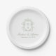 Elegant Sage Chinoiserie Monogram Crest Wedding Paper Plate