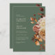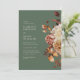 Elegant Sage Fall Wedding Invitation. This stylish wedding invitation features hand-painted watercolor burnt orange and terracotta leaves, cream and beige dahlias, and beautiful rust-coloured roses on a sage green background. Find matching items in the Sage Autumn Romance Wedding Collection.