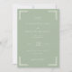This elegant wedding invitation features a soft sage green background with a clean, modern layout. The design includes delicate script and serif fonts that create a sophisticated yet intimate feel, perfect for a timeless celebration. Subtle decorative borders frame the text, enhancing the overall refinement of the invitation. Ideal for couples seeking a classic and serene aesthetic, this template is customizable to suit your special day.