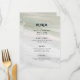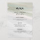 This stylish and elegant wedding menu features modern dark grey text, on an artistic and abstract sage green and grey watercolor background.