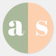 Elegant sage green and peach monogram wedding classic round sticker