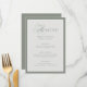 These elegant, luxe wedding menu cards feature a sage green border and a lighter sage green and white design. There is a mix of classic text and modern calligraphy for a classy and minimalist design perfect for your timeless, formal wedding.
