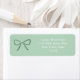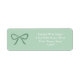 This simple and elegant return address label design features a dark green bow and white return name / return address text against a sage green background. All colours can be customized to your needs however.
