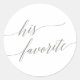 Elegant Sage Green Calligraphy His Favourite Favou Classic Round Sticker
