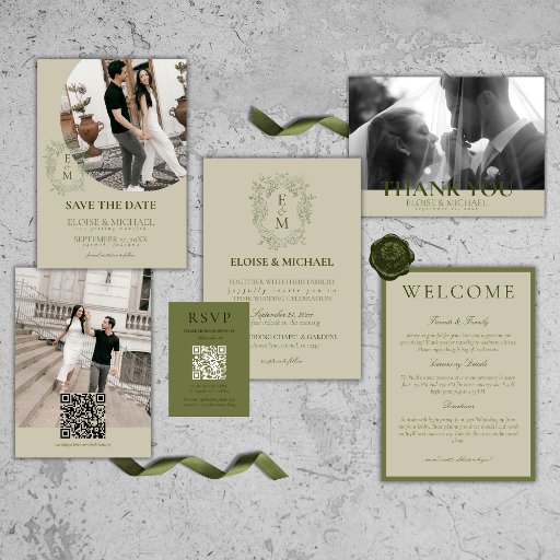 Elegant Sage Green Crest Monogram Wedding Designed by Molly H