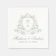 Elegant Sage Green Floral Crest Monogram Wedding Napkin