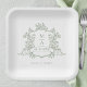 Elegant Sage Green Floral Crest Monogram Wedding Paper Plate