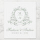 Elegant Sage Green Floral Crest Monogram Wedding Wine Label