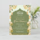 Celebrate the blessings of the holy month with this elegant Ramadan Kareem Iftar Dinner invitation. Featuring a sophisticated sage green backdrop, a classic arch frame, and delicate white roses with yellow accents, this design perfectly balances tradition and modern style. The hanging gold lanterns and Arabic calligraphy add a touch of spiritual warmth. This template is fully customizable, allowing you to easily update the names, date, time, and location for your private family gathering or community Iftar event.