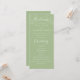 Une carte simple et élégante de mariage vert sauge, avec des lettres de script et des fleurs blanches délicates, Personnaliser avec vos propres informations de cérémonie de mariage, et la fête de mariage à l'arrière.