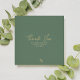A delicate classy gold sage emerald green fancy wedding thank you card. This minimalist calligraphy thank you card features a handmade design of green background and gold line art of eucalyptus leaf. With a classy modern minimalist shine outlook. Perfect for summer and fall and spring for your garden or green and gold-themed wedding. Grab this elegant chic fancy wedding thank you card and make it yours! Click on the personalize button and customize the info.