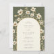 This elegant wedding invitation features beautiful watercolor champagne and gold flowers with faux gold foil leaves and border on a sage green background. The back is sage green and the text is dark grey.