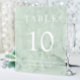 Elégante marque de numéro de table de mariage en acrylique verte avec gel avec "Table" et le numéro de table en typographie serif blanche classique, ainsi que vos noms et votre date de réception en typographie blanche moderne. Créez chaque numéro de table et ajoutez un à la fois à votre panier, puis vérifiez quand tous les numéros sont dans votre panier.