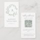 Elegant Sage Green Monogram QR Code Floral Crest Business Card