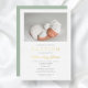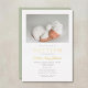 Elegant Sage Green Phot Baptism Gold Foil Invitation.