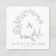 Elegant Sage Green QR Code Monogram Floral Crest Square Business Card