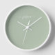 Modern clock with a sage green background and a hand lettered white girly script name. Personalize with your name