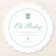 Elegant Sage Green Script Oh Baby Shower Paper Coaster